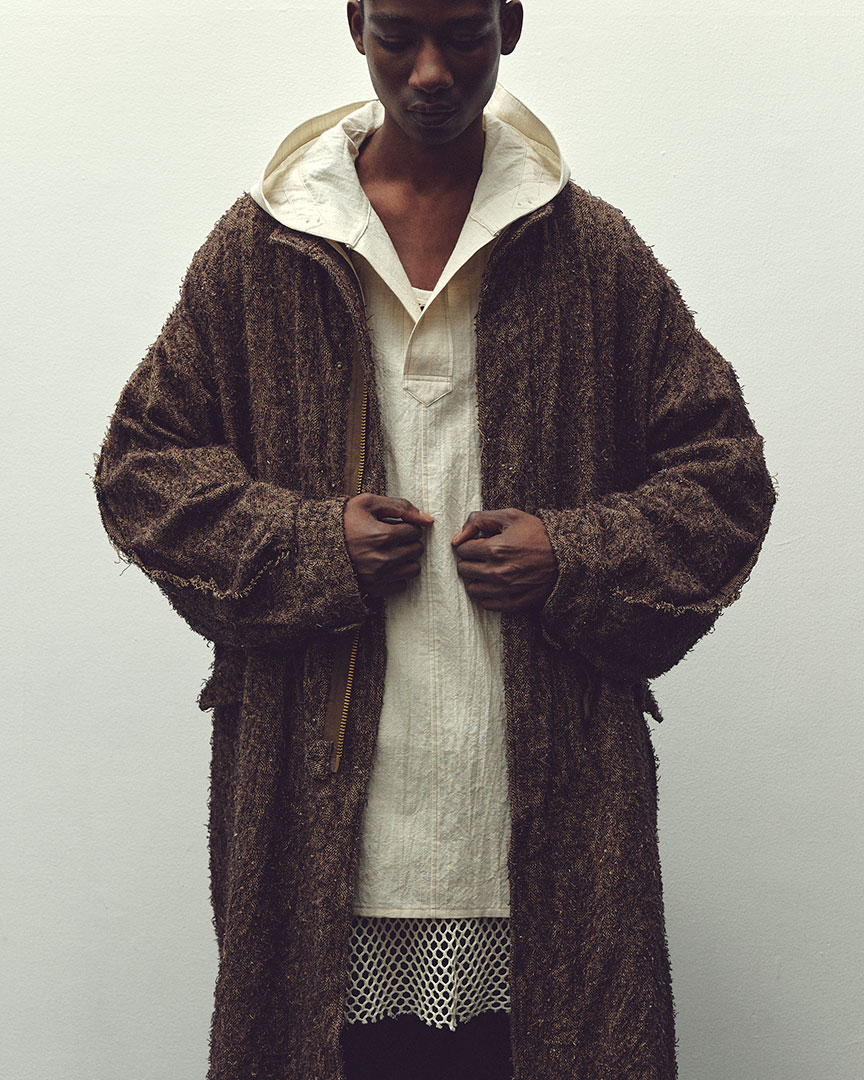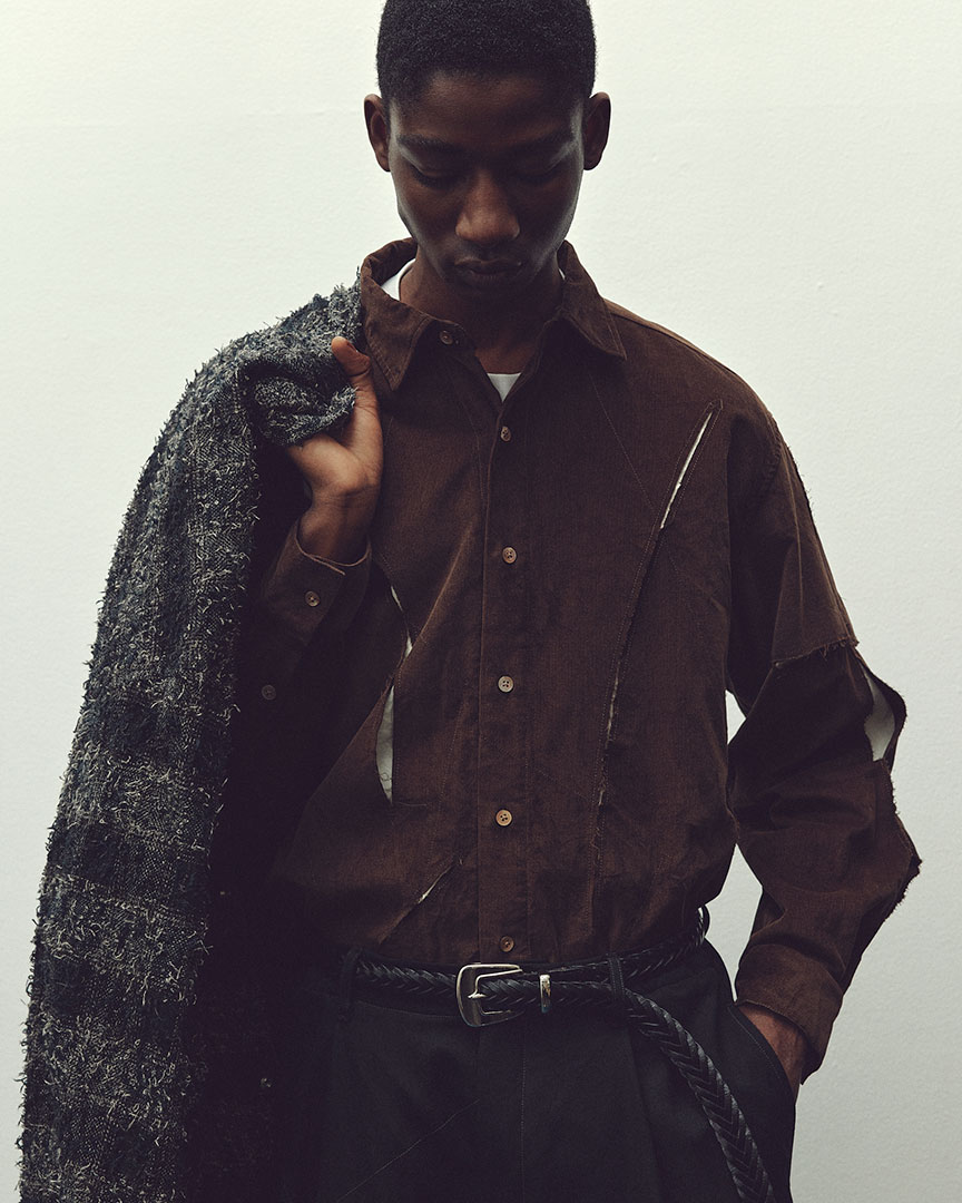 2023AWよりブランド設立。手仕事を加えること。普遍的とされている洋服の中に、ブランドとしての装飾で彩る。コードワークなど様々なディテールがEMAMの彩りであり、その彩りが輪郭となる。構造美の追求と遊び心に向き合う。個々の視点が交じり合う。混ざりきらない混沌とした色を作り上げ、EMAMの色を創造する。