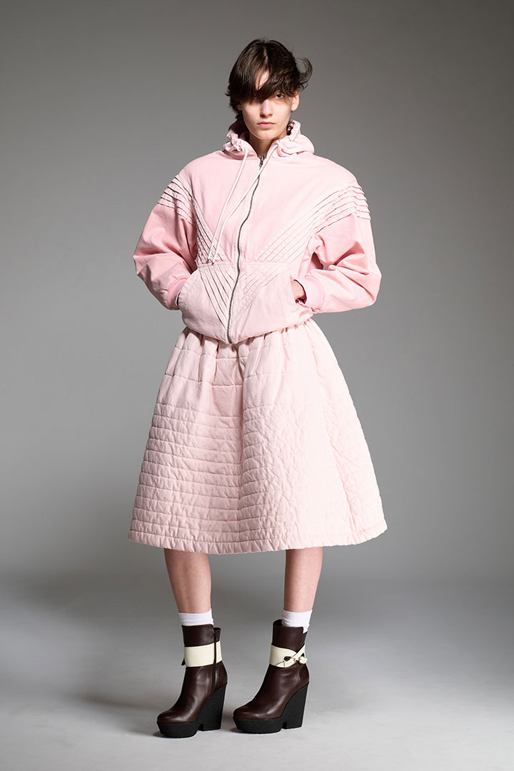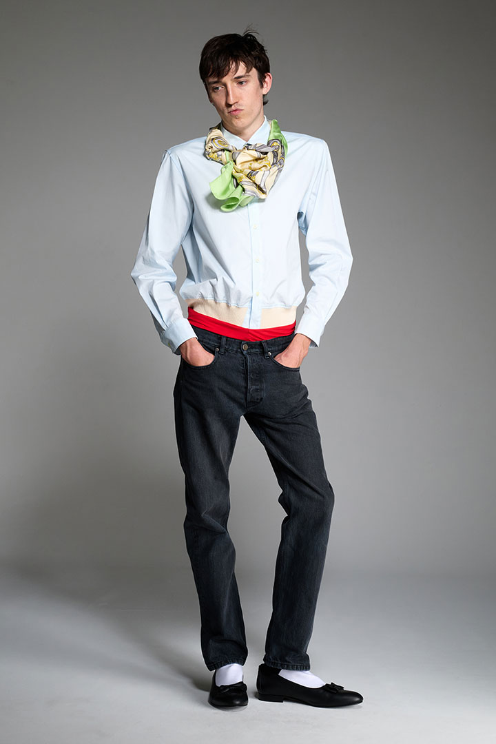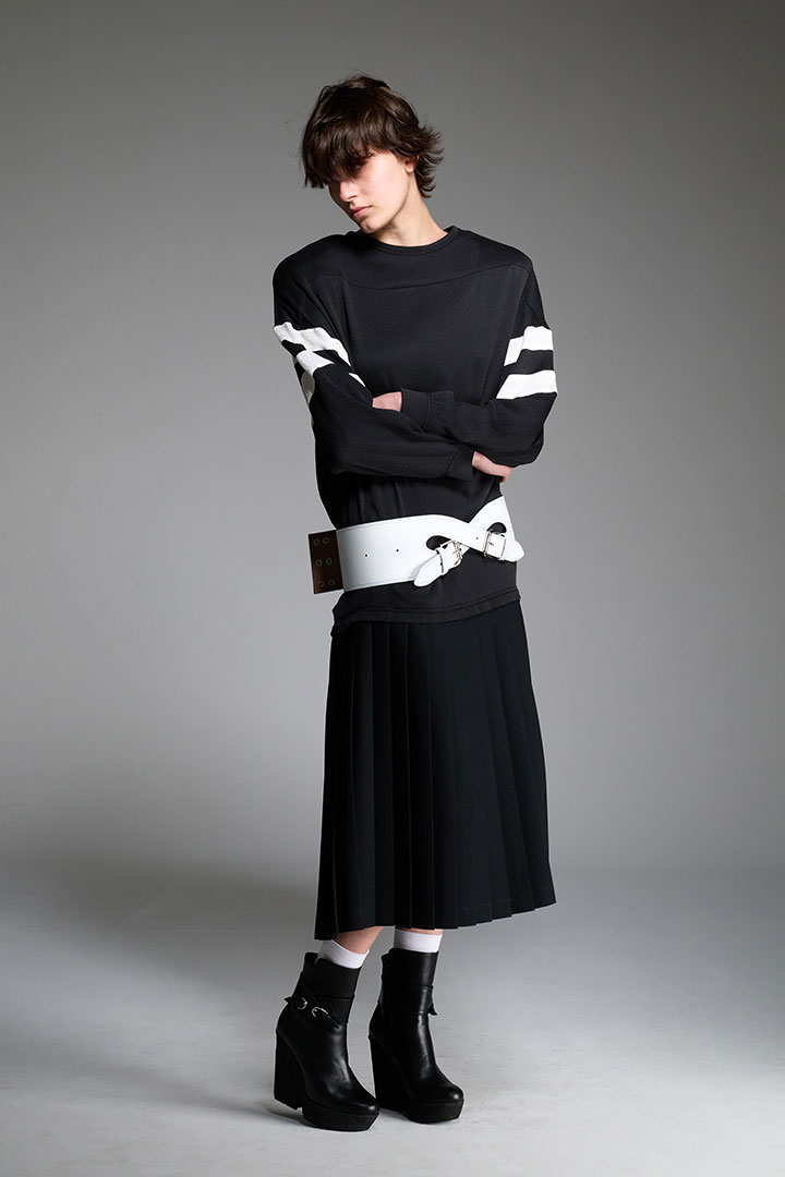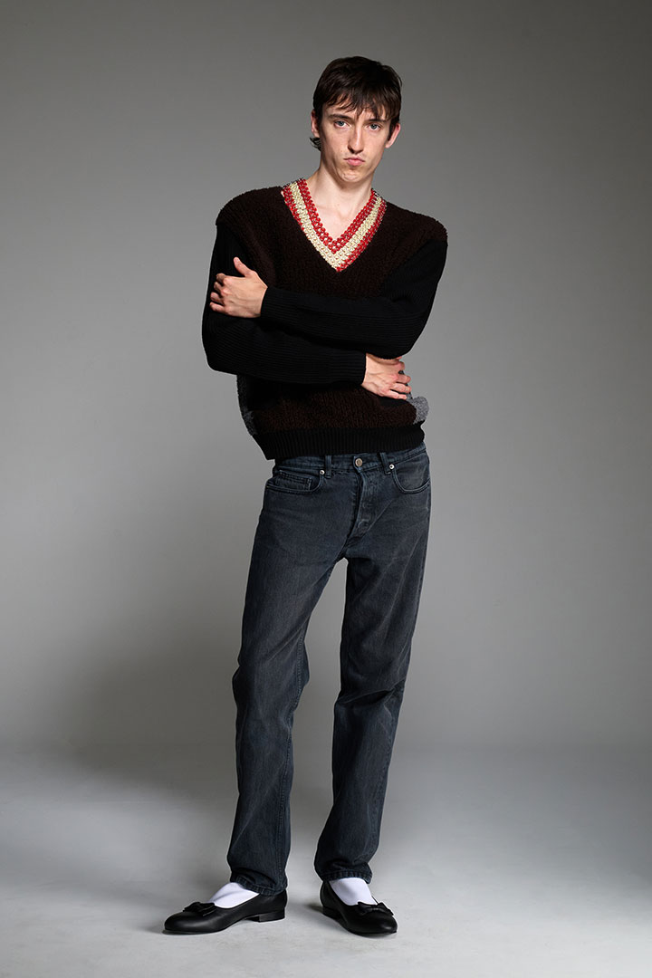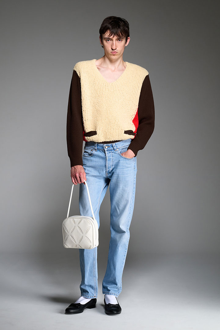 《ステファン クック (STEFAN COOKE)》は、2017年にデザイナーのステファン・クックとそのパートナー、ジェイク・バートによって設立されたロンドンを拠点とするファッションブランド。二人はセントラル・セント・マーチンズの修士過程で出会い、ステファン・クックは卒業コレクションで「L'Oréal Professionnel Creative Award」、2018年には「H&Mデザイン賞」を受賞し、LVMHプライズ2019のファイナリストでもある。日常的で退屈とされがちな「boring clothes(退屈な服)」を再構築し、独自の美学を加えながら昇華させることをコンセプトにしており、またルーツである英国の伝統的なデザインを最先端のデザインにまで押し上げることがこのデュオの得意とするアプローチ手法だ。アーガイル柄のニットにカットアウトを施したり、デニムの写真をプリントした伸縮素材を用いたトロンプルイユ効果と本来の素材とは逆の機能性をもたらしているアイテムなどユニークな発想を武器としている。